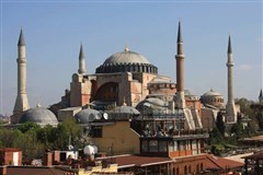 随后前往游览奥斯曼帝国时期的皇宫【托普卡泊老皇宫】(游览约1.5 小时),它是奥斯曼帝国的政治中心,每天约有5,000人来这里参观,每年接待参观者达2,500,000人,是欧洲参观人数最多的博物馆,也是今天伊斯坦布尔最重要的历史古迹之一;【蓝色清真寺】(游 览约30分钟)苏丹艾哈迈德清真寺是土耳其的国家清真寺,也是土耳其最大城市及奥斯曼帝国首都伊斯坦布尔的清真寺古迹。苏丹艾哈迈德清真寺是其中一个因室 内砖块所用的颜色而被称为蓝色清真寺的清真寺。 苏丹艾哈迈德清真寺建于苏丹艾哈迈德一世统治时的1609年至1616年。【圣索非亚大教堂】(外观10分钟);参观【苏莱曼清真寺】(约30分钟)。