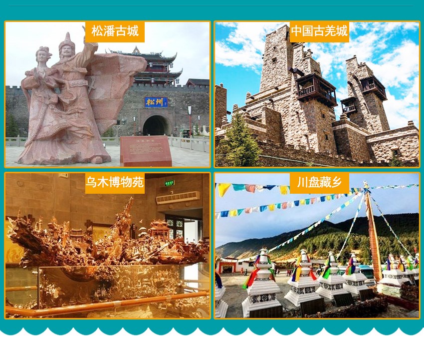 经典景点:童话世界—九寨沟、黄龙景区、特色藏寨,峨眉自然美景、佛国天堂乐山、乌木博物馆、,四川精华风景线将诠释游客您的完美行程;