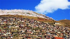 8.山坡上可以拍到佛学院宏伟壮观的全景,但要注意不可攀登挂满经幡、堆砌玛尼石的区域。