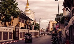 抵达后,前往清迈古城,乘坐嘟嘟车古城观光(三王纪念广场,大塔寺,古城商业街,水果街)嘟嘟车——泰国独有的一种交通工具,在此自行选购美味热带水果,大快朵颐一番,后顺着滨河到达滨河大桥结束这趟嘟嘟车之旅。大塔寺——也叫“柴迪隆寺(Wat Chedi Luang)”,位于清迈古城的中央,曾经是泰北最高的建筑,因经历了大地震、泰缅战争炮击及雷击后大约剩下60米高,有“亚洲金字塔”的美称。