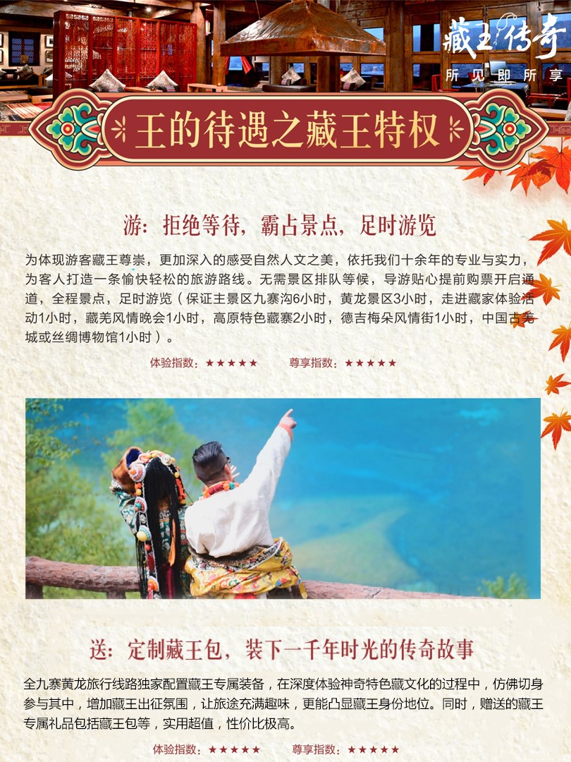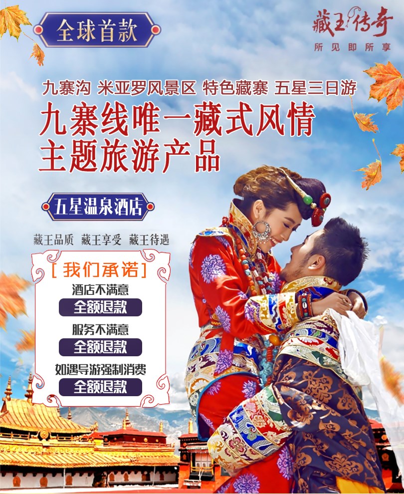 五星藏式酒店+温泉酒店✔九寨沟、米亚罗红叶豪华3日游✔九寨藏王传奇 推荐 特价 热卖 新品 团购