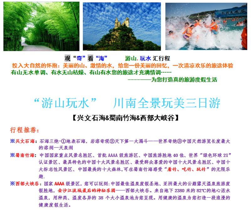 兴文石海+蜀南竹海+西部大峡谷全景三日游 推荐 特价 热卖 新品 团购