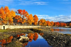 4:红草地:每年十月,极目远望,一片红彤彤的景致映入眼帘,红得那么热烈,那么艳丽,也那么醉人。在或黄或绿的白杨树的衬托下,灿灿生辉,妩媚无比;