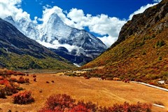 早起后,离开新都桥,翻越【高尔寺山】(海拔4412米)经过雅江后穿越剪子弯山隧道(全长2230米)卡子拉山(海拔4718米),经世界高城,高原明珠—理塘县(海拔4000米),观毛垭大草原风光,经无量河,翻越传说中龟兔赛跑—【兔子山】,途经青藏高原最大的古冰川遗址、稻城古冰帽—【海子山自然保护区】(海拔4500米)抵达桑堆小镇远观【红草地】,极目远望,一片红彤彤的景致映入眼帘,红得那么热烈,那么艳丽,也那么醉人。在或黄或绿的白杨树的衬托下,灿灿生辉,妩媚无比。近视,“山青心欲燃,红树醉秋色”,我们徜徉在公路畔的小村庄,“红草地”在阳光下奏鸣着令人陶醉的红色旋律,真想套用唐代诗人杜牧的千古名句,也喊出一句“停车坐爱红草地,霜叶红草十月花”,沿途欣赏赤土河谷迷人风光、世外桃源般藏式村寨,晚抵达最后的香巴拉——稻城;