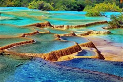 早上6:00由我社安排专职司机到酒店接其前往集合地点(请勿忘退房时于前台领取路早)一路沿岷江逆流而上,沿途观赏成都平原风光。经都映高速,沿紫平铺库区而上(约 110 公里,车程 2 小时左右)观赏 “ 地震壁画 ”, 沿途可看到藏族、羌族的独特民居、碉楼、吊桥等建筑物,观赏1933地震遗迹---叠溪海子。午餐后经松潘、前往松潘县境内的“人间瑶池”黄龙,黄龙沟的数千个钙化彩池形态各异,流光泛彩,长达2500米的钙化硫是世界之。沿途主要景点有【洗身洞、金沙铺地、盆景池、石塔镇海、五彩池】等。游览后前往川主寺或九寨沟入住,晚餐后自由活动或在入住酒店休息。