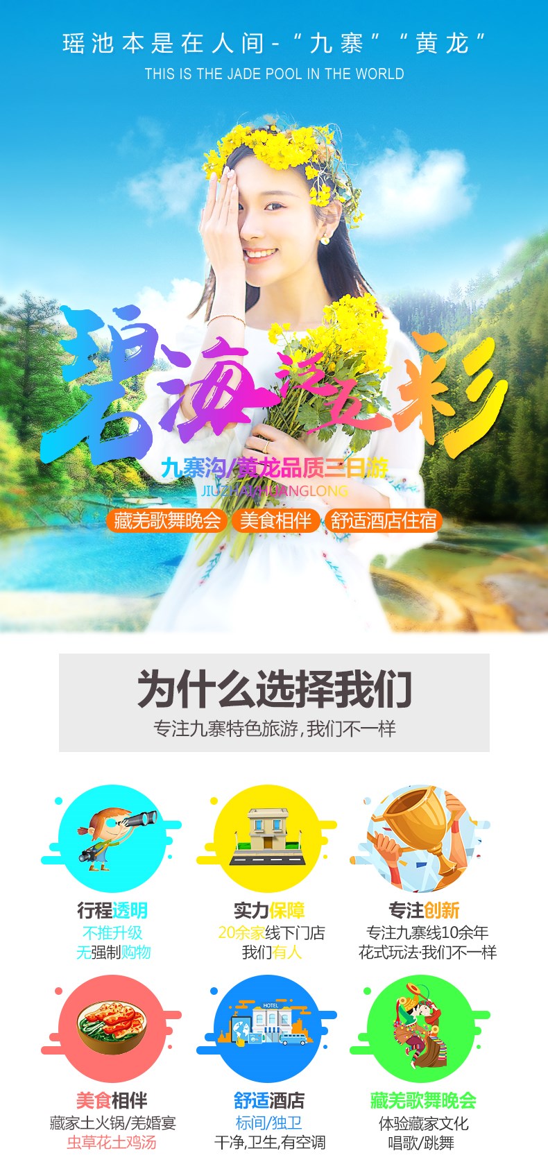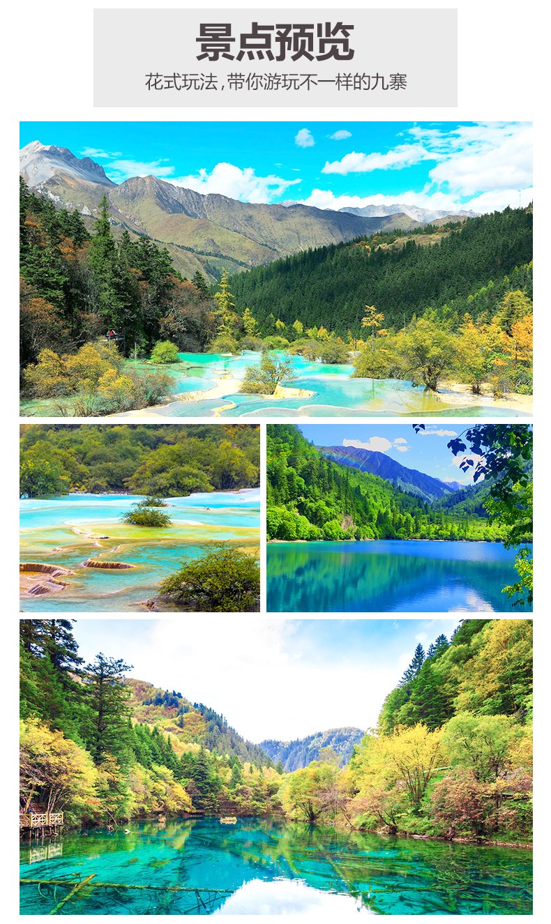 九寨沟黄龙三日精品游(0自费+赠送烤羊家访和藏羌晚会)详情电询 推荐 特价 热卖 新品 团购