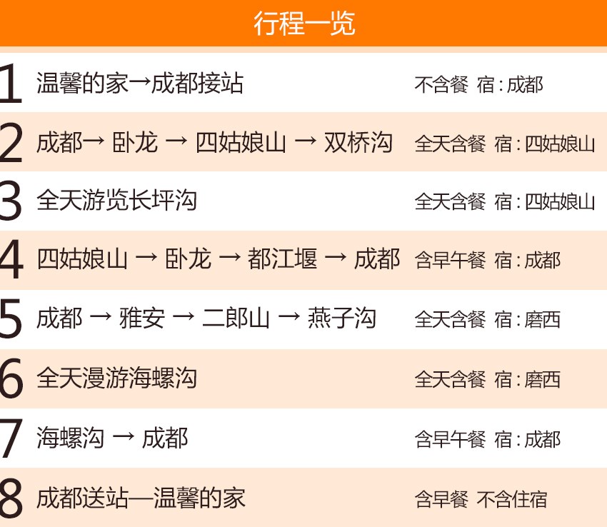 特别提示:1、因气候等客观因素,我们建议您尽量避免当天急转,以避免出现无法正常转机的情况;如乘选择汽车团的游客,也最好选择在成都住宿,以避免出现无法正常乘坐汽车、火车或飞机返程的情况。如游客当地急转,本公司不承担由此给游客带来的任何损失,将尽力协助游客处理相关事项