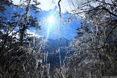 千年冰川:第四纪海洋性气候低海拔冰川,大冰瀑布高1100米,宽1080米,是黄果树瀑布15倍