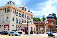 早餐后,首先来到马来西亚新首都布城或称太子城。【太子城】(游览60分钟)四面环山被原始森林包围,一条人工河环绕四周,将城中主要建筑串联起来,并因太子湖而得名。目前除最高法院和国家发展局外,所有国家机构全都搬进了新城,吉隆坡则完全成为经济商业中心。穿过一道原始森林形成的大门,就看到太子城广场绿茵广阔,中心装饰着各色缤纷鲜花及喷水池,迎风飘扬马来西亚十四个州的旗帜。虽然艳阳高照,大家还是会抢着留影!满栽热带植物和鲜花的林荫大道直通首相署前广场,以粉红色为基调、四分之三临水而建的水上清真寺在阳光的映射下辉煌灿烂。看完庄严肃穆的马国行政中心。