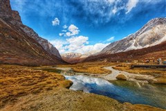 早起后,有一片如诗如画的世外桃源。神奇的光线,无垠的草原,弯弯的小溪,金黄的柏杨,连绵起伏的山峦,错落有致的藏寨,星星点点的牛羊……是令人神往的“光与影的世界”、“摄影家的天堂)。翻越【高尔寺山】(海拔4412米)经过雅江后穿越剪子弯山隧道(全长2230米)卡子拉山(海拔4718米),经世界高城,高原明珠—【理塘】(海拔4000米),观毛垭大草原风光,翻越传说中龟兔赛跑—兔子山,途经青藏高原最大的古冰川遗址、稻城古冰帽—【海子山自然保护区】(海拔4500米)抵达桑堆小镇游玩红草地:极目远望,一片红彤彤的景致映入眼帘,红得那么热烈,那么艳丽,也那么醉人。在或黄或绿的白杨树的衬托下,灿灿生辉,妩媚无比。近视,“山青心欲燃,红树醉秋色”,我们徜徉在公路畔的小村庄,“红草地”在阳光下奏鸣着令人陶醉的红色旋律,真想套用唐代诗人杜牧的千古名句,也喊出一句“停车坐爱红草地,霜叶红草十月花”,沿途欣赏赤土河谷迷人风光、世外桃源般藏式村寨,晚抵达最后的香巴拉——【稻城】,后前往日瓦镇入住酒店。