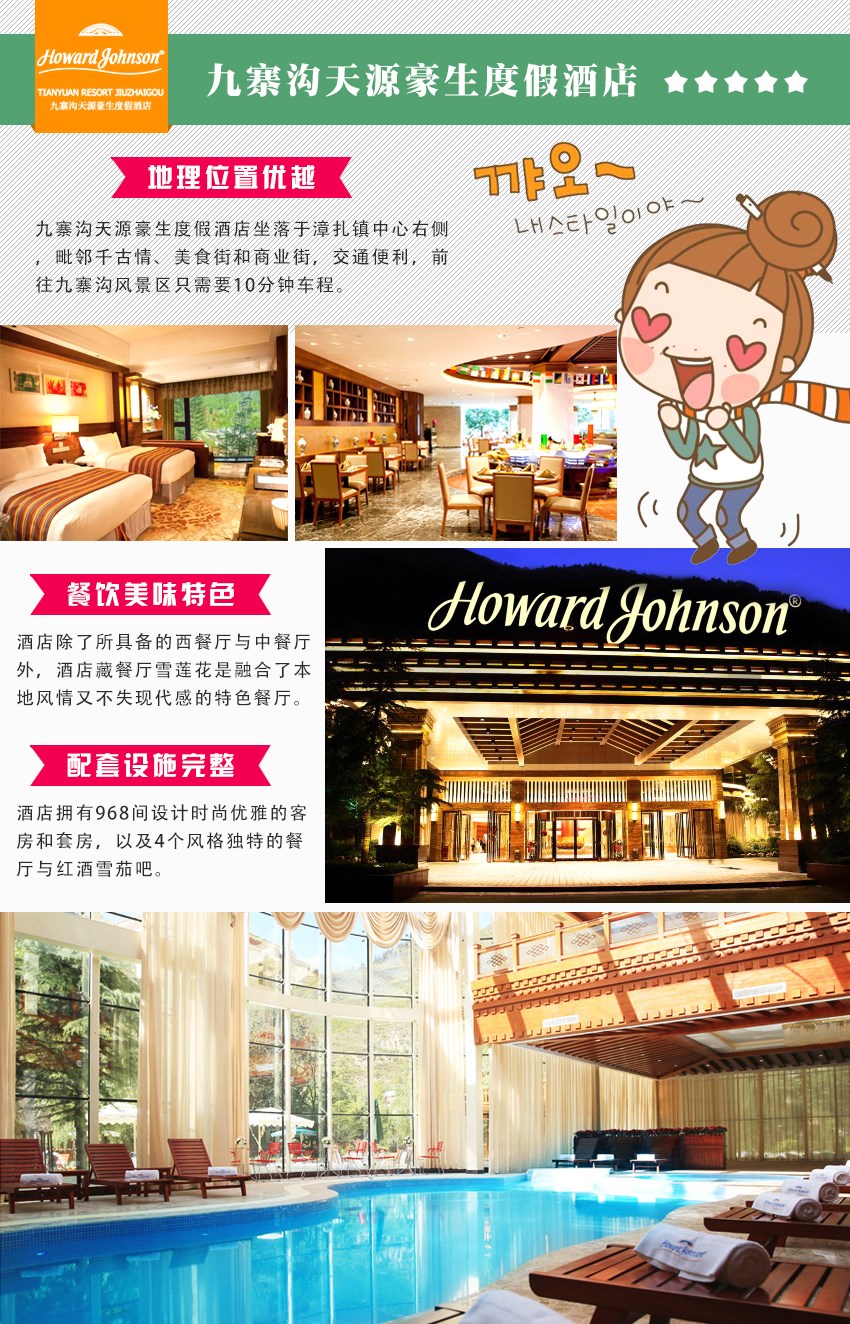 套餐四升级国五(豪生酒店):住宿九寨沟豪生酒店,赠送豪生酒店温泉、酒店五星自助餐、烤羊家访、藏羌风情晚会、升级特色餐饮。