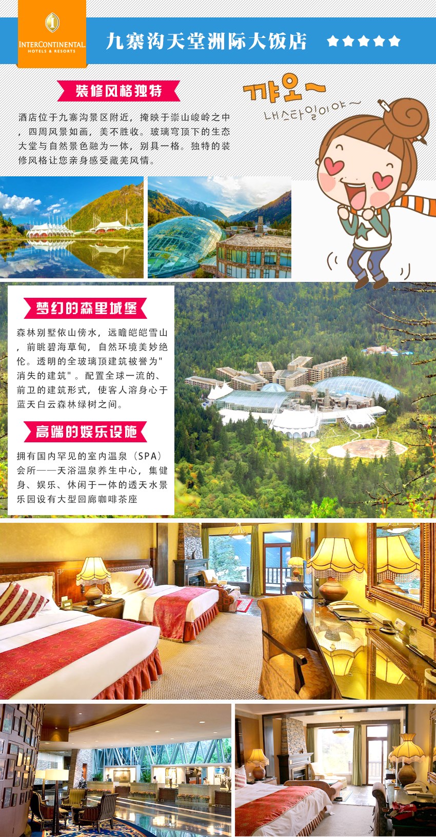 套餐五升级超五(洲际天堂酒店):住宿九寨沟洲际天堂酒店,赠送九寨天堂温泉、酒店自助餐、烤羊家访藏羌风情晚会 自助早晚餐
