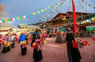 | 行程介绍 | 7:00九寨沟酒店用完早餐后,出发到达【藏族村寨】(游览不低于1小时),体验民族地区文化特色及经济建设成就. 川盘藏乡 松潘县川主寺镇水晶乡川盘村,这里可以了解东方藏族人的风俗习惯,民族特色,参观四川省非物质文化遗产川盘花灯演出,欣赏藏传佛教文化中的壁画、经幡、白塔、玛尼石堆等艺术品,了解具有浓厚高原特色的青稞棚及牛粪墙体等,这里也是为了解决少数民族地区建设和就业推出的原生态的村寨游览。让您在观山玩水、沐浴阳光、亲近自然的同时,能够深入体验韵味深厚、风味淳朴的藏民族文化。