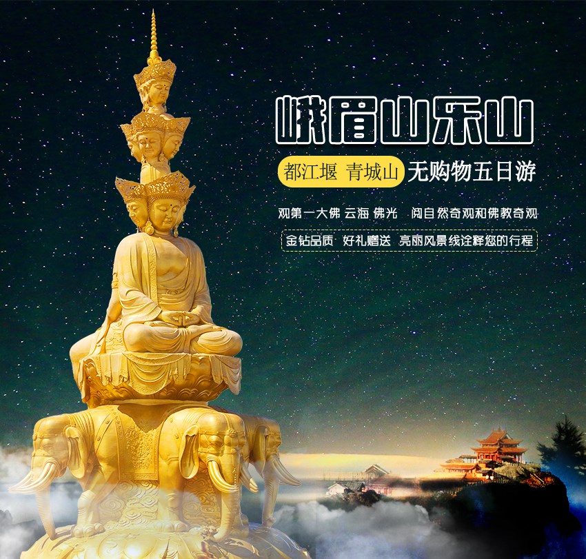 经典景点:峨眉自然美景、佛国天堂乐山大佛、乌木博物馆、川剧变脸晚会、问道青城山、拜水都江堰 四川亮丽风景线将诠释游客您的完美行程;