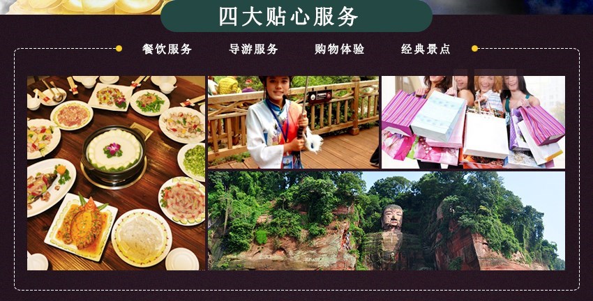 3.餐饮:4早5正,十人一桌,八菜一汤。早餐均在所住宾馆用餐,不含所有成都市区正餐。