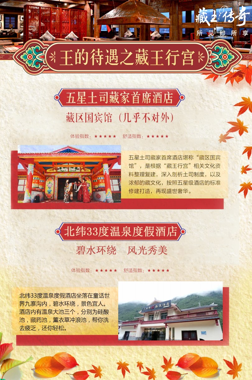 五星藏式酒店+温泉酒店✔九寨沟、米亚罗红叶豪华3日游✔九寨藏王传奇