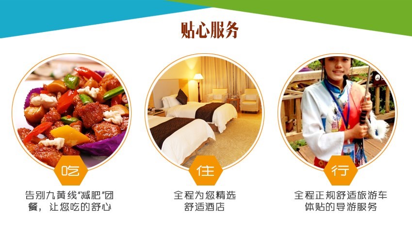 3、行:全程正规舒适旅游车,体贴的导游服务,少双汽团往返交通重复。