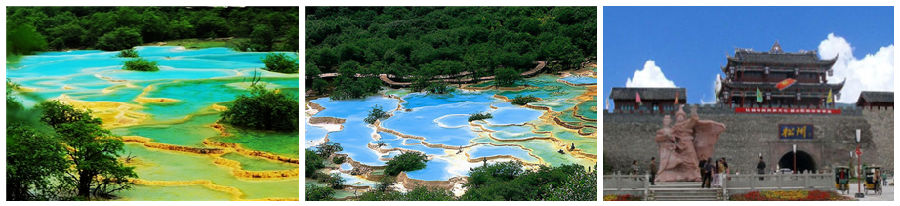| 行程简介 | 〖今日精彩:叠溪海子,九大碗,黄龙风景区〗 早晨由本公司专车及导游工作人员前往您所住地点接,沿途观赏成都平原风光,经都江堰市,映秀、汶川,茂县( 此路段为5.12地震灾区,可了解地震知识、感受灾后重建的新貌,观赏岷江河谷风光、藏羌民族风情)。观赏1933地震遗迹---叠溪海子,全程约300多公里,需8小时左右,途中可停留休息、上洗手间(全程洗手间均收费1元)、停车拍照和及午餐,路段基本上为柏油路和水泥,路况较好。下午到达黄龙风景区,游览世界级风景区【“人间瑶池”黄龙,迎宾彩池、洗身洞、金沙铺地、五彩池】等景点。之后到达川主寺镇或九寨沟口入住酒店。 晚上餐后可以参加走进藏家烤羊晚会(费用已含,不去不退)品酥油茶,喝青稞酒,吃手抓牛羊肉,看表演围着锅庄跳起欢快的舞蹈了解当地浓郁的藏羌风情。不参加的客人可自行在酒店休息。